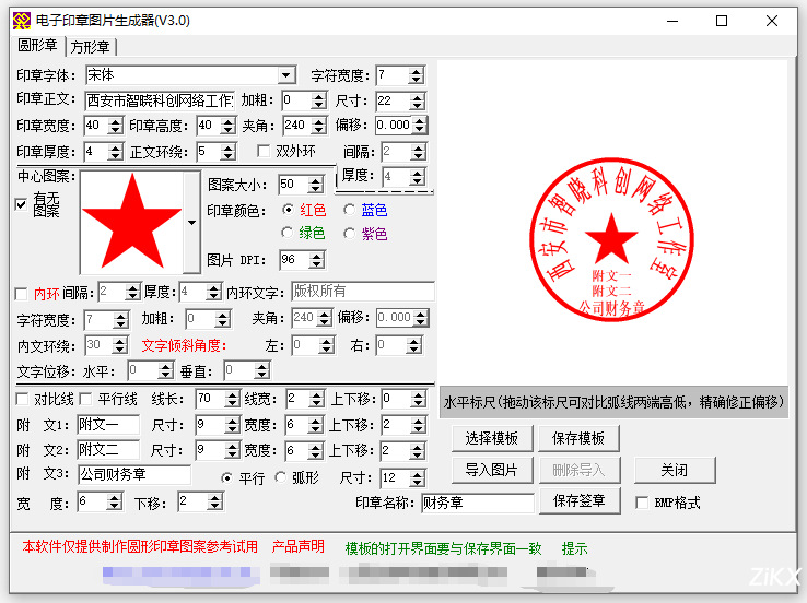 3. 全面支持圆形、方形等常见印章形状的设计与生成;